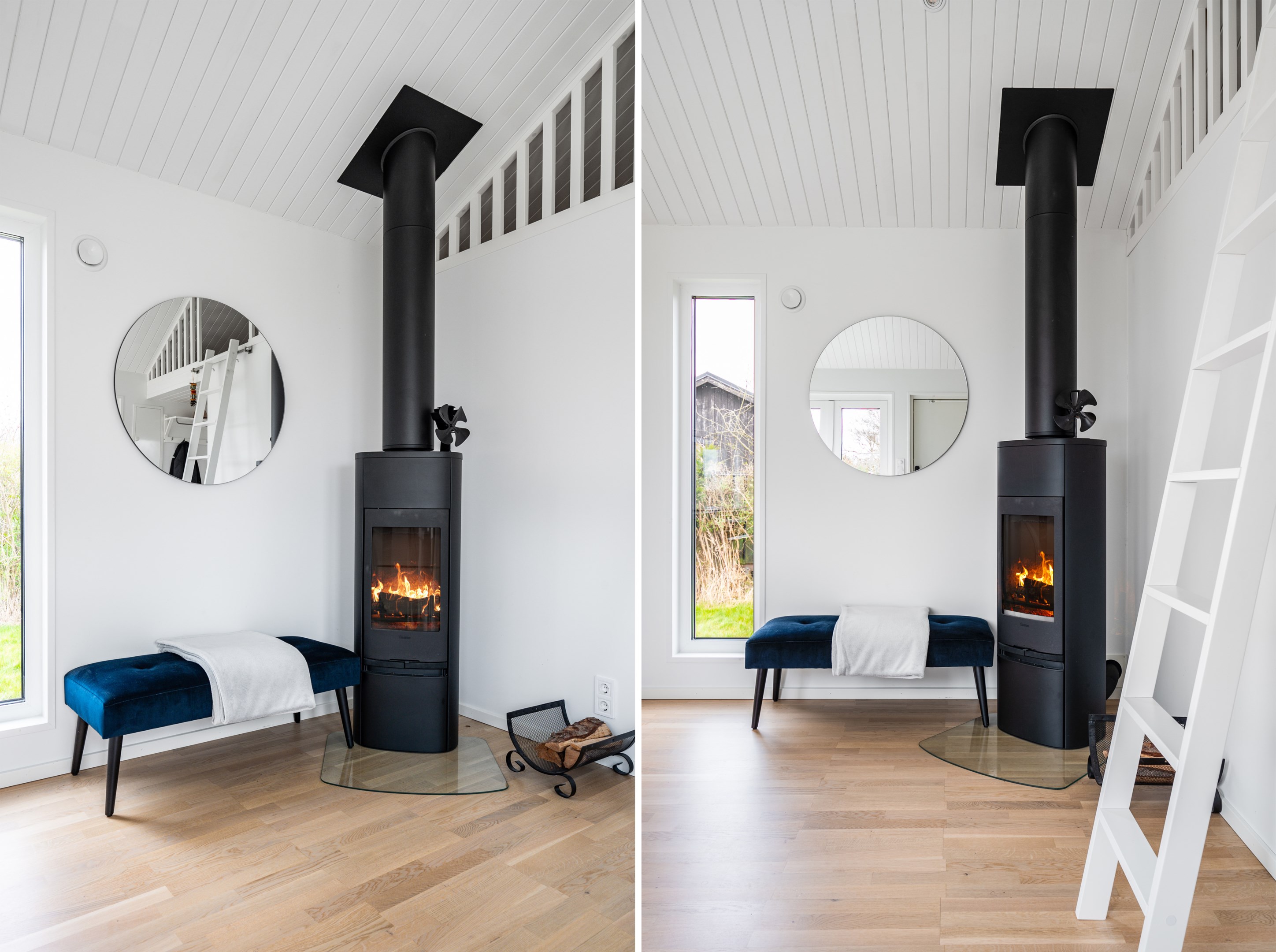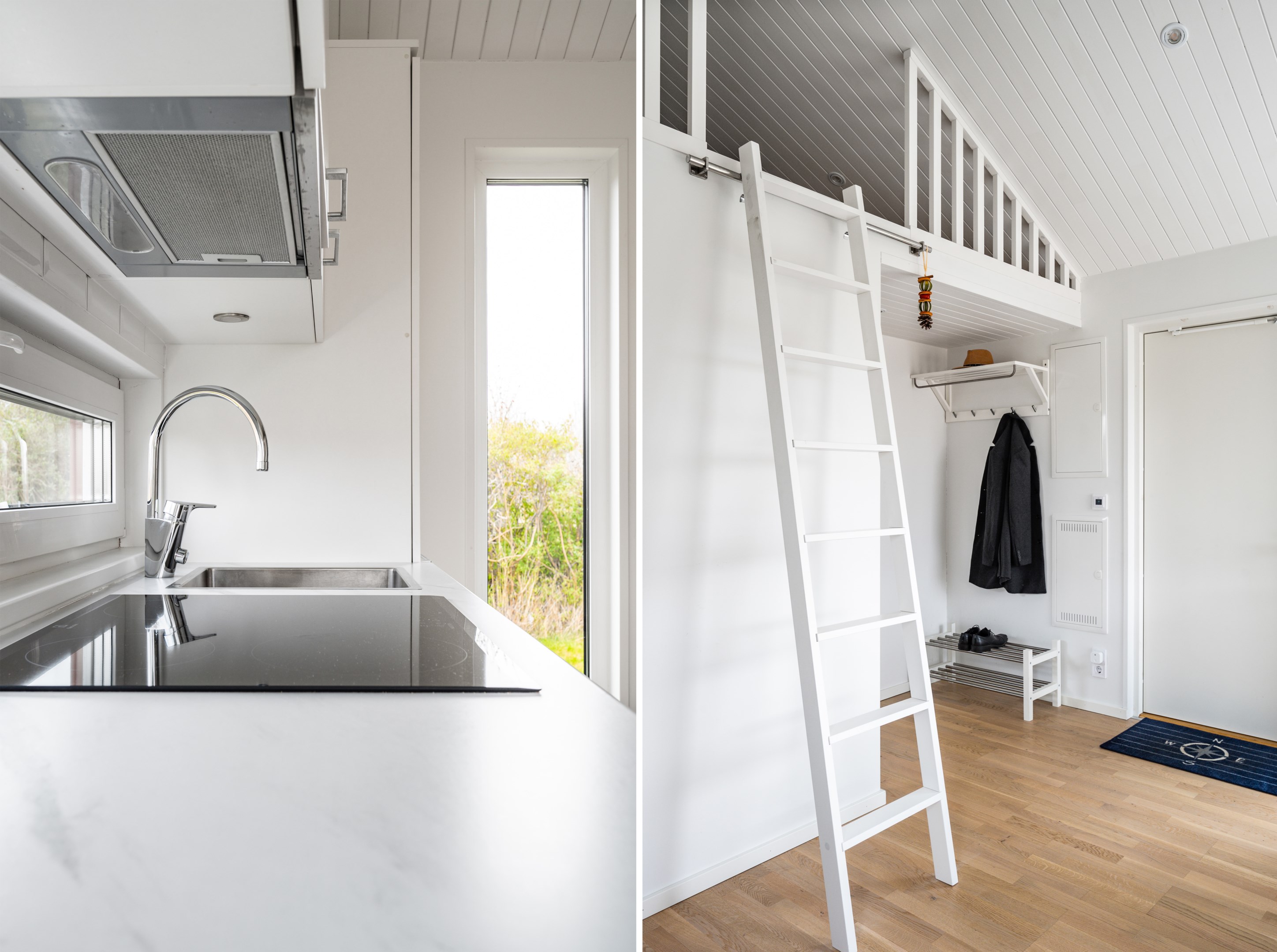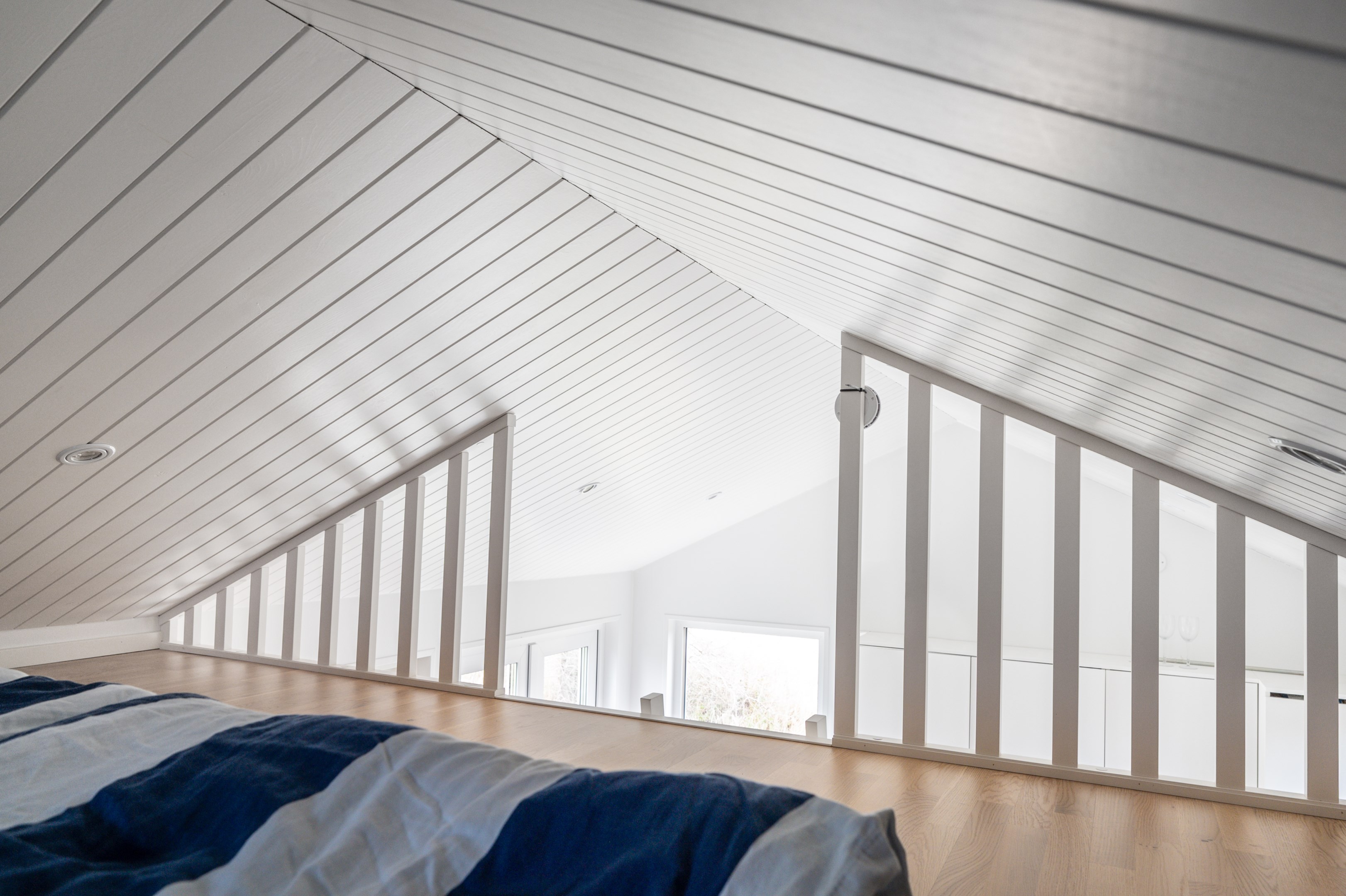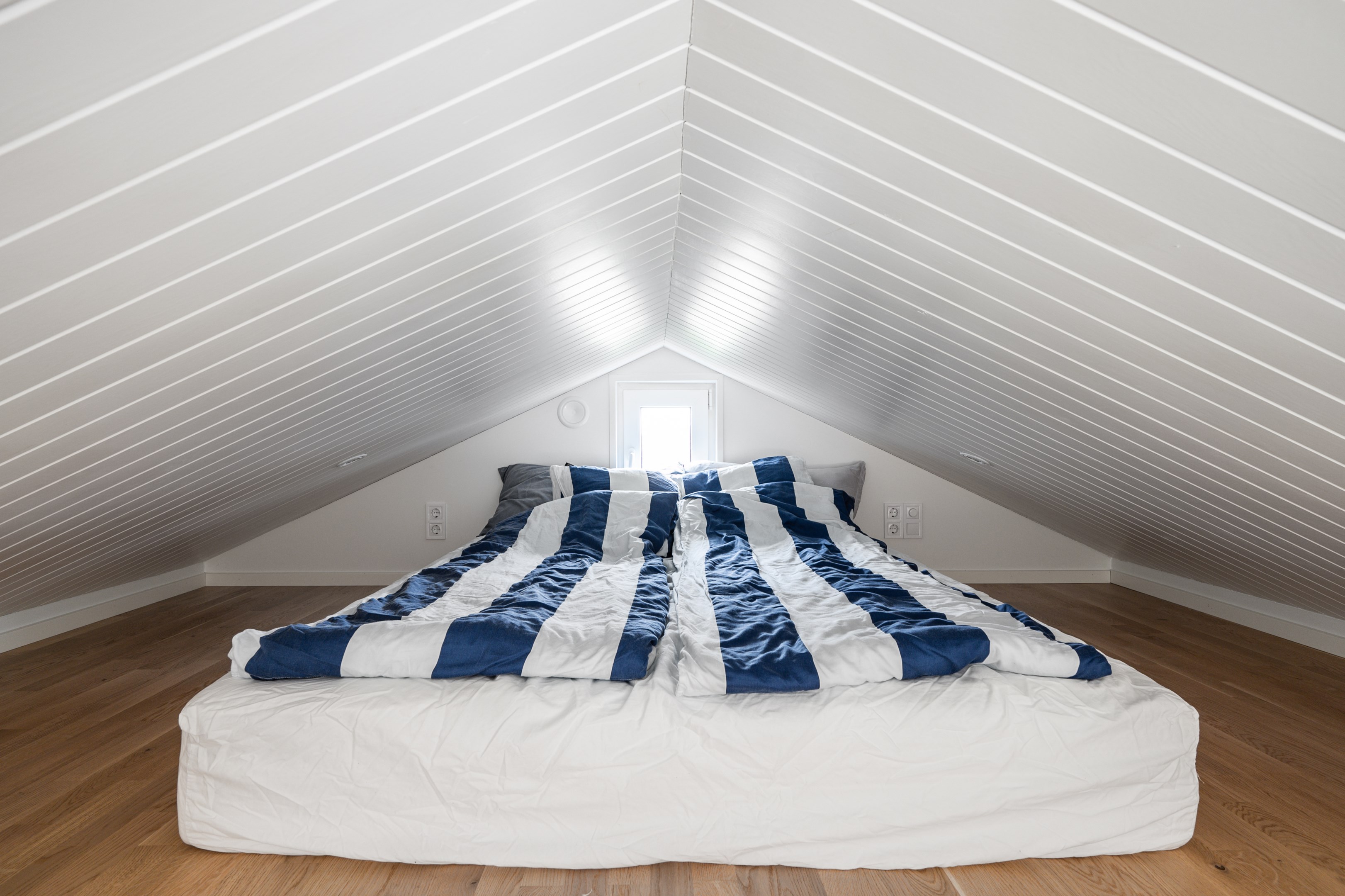 En smart lösning för att spara yta, där du tar dig upp via en stege. Här ryms en säng, även om takhöjden är lägre, vilket skapar en mysig sovplats.